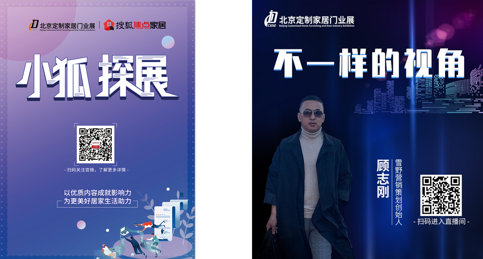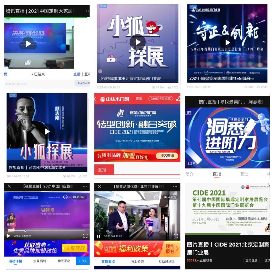 除了展會現(xiàn)場豐富的同期活動,展會期間,主辦方還聯(lián)合新浪家居、騰訊家居、搜狐焦點家居、慧亞網(wǎng)、居美·中華木門網(wǎng)、中華建材網(wǎng)等權(quán)威媒體分別推出騰訊圖文直播;新浪探展、小狐探展、龍寶探展、慧亞品牌優(yōu)選、居美·中華木門網(wǎng)等視頻直播,同步呈現(xiàn)展會精彩瞬間。更有“不一樣的視角”-CIDE 2021北京定制家居門業(yè)展大咖視角直播活動,雪野營銷策劃的顧志剛老師,帶觀眾領(lǐng)略本屆展會亮相的定制設(shè)計與優(yōu)秀品牌。