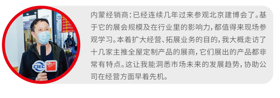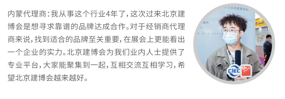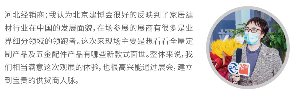 2021北京建博會(huì),吸引了來(lái)自全國(guó)各地大批采購(gòu)商、零售商、渠道商、設(shè)計(jì)師、建筑及裝飾工程單位以及房產(chǎn)開(kāi)發(fā)機(jī)構(gòu)等專(zhuān)業(yè)買(mǎi)家到會(huì)采購(gòu)、洽談,現(xiàn)場(chǎng)反響熱烈。其中,有強(qiáng)烈采購(gòu)需求的觀眾占比44%。